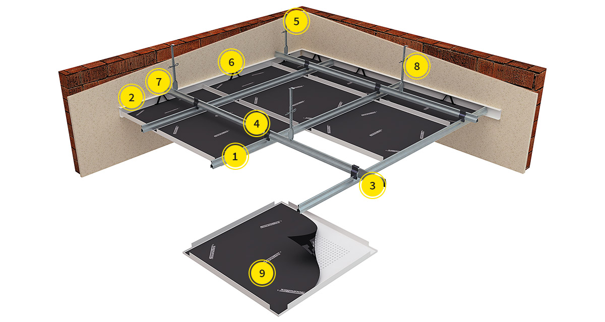Le système Clip-in Heavy Duty est constitué defixation de l'aluminium ou des plaques galvanisées sous la lourde charge de profil de l'opérateur de la section V de marche arrière. Dans ce système, les transporteurs sont invisibles. Il peut obtenir une vue plus simple que des systèmes de transporteur visibles. Tous les panneaux peuvent être démontées indépendamment les uns des autres manuellement avec un appareil spécial. Cela permet un accès facile aux installations et équipements sur le plafond.