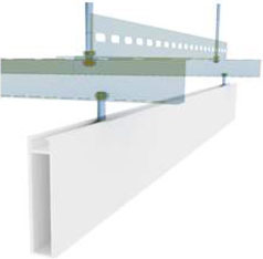 Le système de baffle de l’ Extruce est une alternative et durable du système de plafond modulaire linéaire. Ce système se compose d'extrusions en aluminium matière première, profils en aluminium extrudé dans une forme en U et crochet spécial-sur les tapis et accessoires pour les accrocher. Ce plafond permet le maintien de la circulation de l'air dans le plafond tout en permettant à la fumée de s'échapper. Les profils obtenus des profils U sont serrés au transporteur adulte suspendue à 1200mm au plafond pour former le système de plafond.
