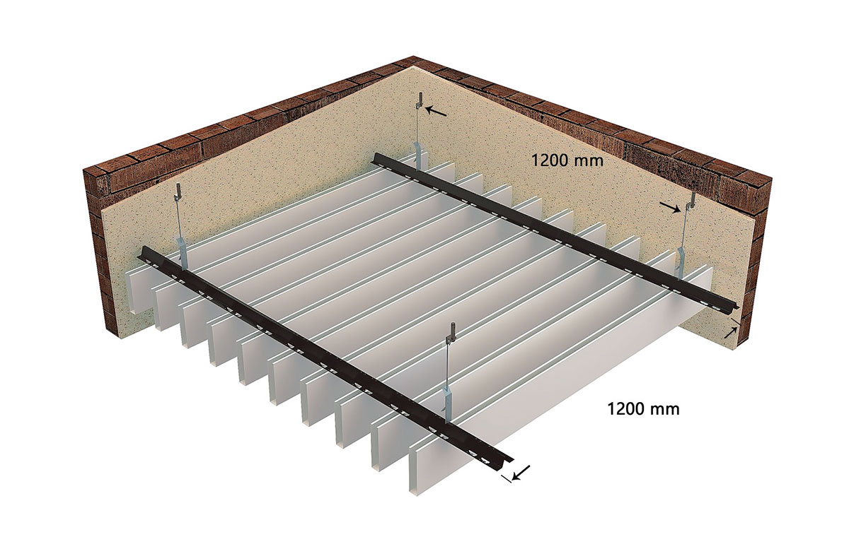 Les plafonds du baffle et les plafonds vectorels sont constitués de panneaux linéaires en différentes dimensions qui pendent verticalement. Ce modèle léger, monté sur flotteurs de bord est souvent l'éléments du plafond pour réduire la hauteur de plafond sans compromettre le volume de la salle. En fournissant une autre dimension à la conception linéaire et la région, il est possible de cacher l'équipement de service dans le plafond. Bois métal éléments du Baffle permettent de faire des dessins de plafond qui sont plus durables et plus faciles à entretenir que le bois. Différents modèles sont possibles en changeant la largeur de la base, de la hauteur et de la distance entre les panneaux. Tous le baffle et le vecteur ont facilement accès à l'espace de plafond, l'installation et le démontage est facile.