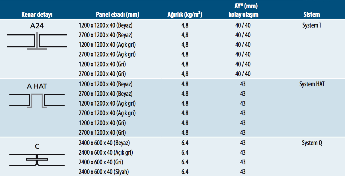Rockfon ürünleri, bağıl nem oranlarının 100% RH’a yükseldiği mekânlarda bile boyutsal stabilite sağlar ve 0ºC ile 40°C arası değişen sıcaklıklarda rahatça montaj yapılabilir. İklimlendirme gerektirmez.Korozyon direnci: T Sistemleri ve HAT Sistemleri ile uygulanan VertiQ paneller yüzme havuzları ve dış mekânlarda kullanılmaz.