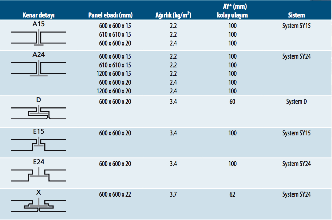 Rockfon A ve E Kenar Paneller demonte edilebilir.