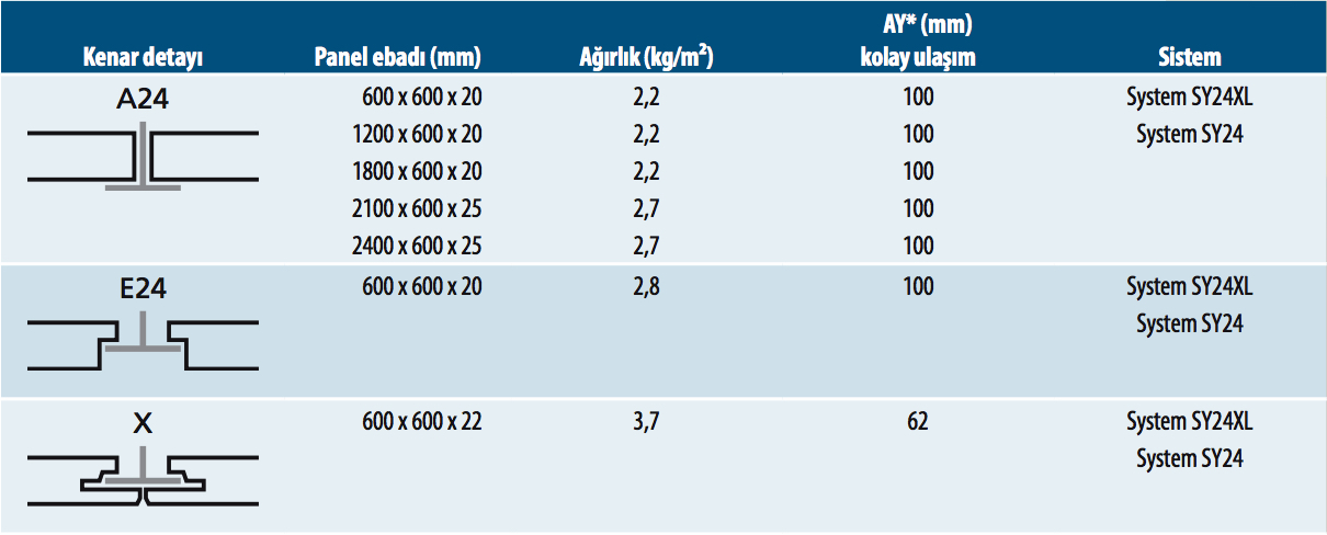 Rockfon A Kenar Paneller demonte edilebilir. Samson sistemi ile kullanilan paneller demonte degildir.