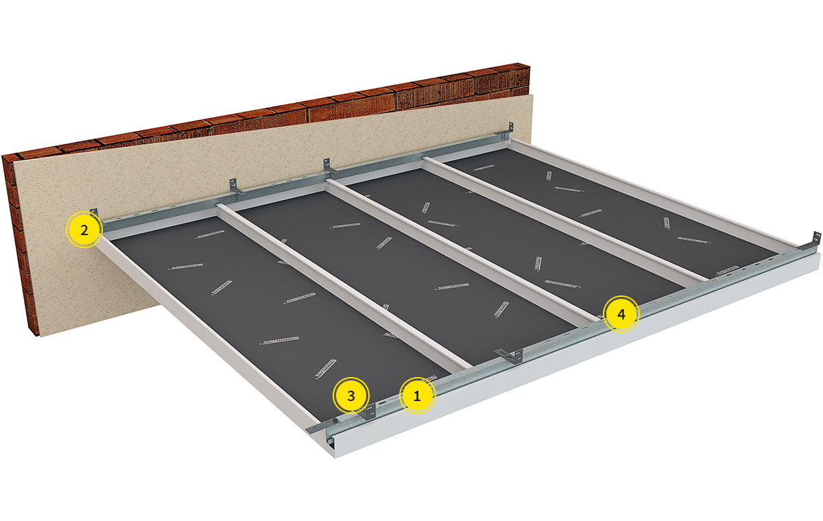 Система коридора с крюком создается в пользу некоторых пространств для легкого и частого доступа к потолочному пространству, где точки обслуживания собираются по длине коридора. Профили закреплены на каждой стороне стен коридоров, панели подвешены в продольном направлении. Легкий доступ к потолочному пространству и непрерывная форма делает эту систему идеальной для коридоров.