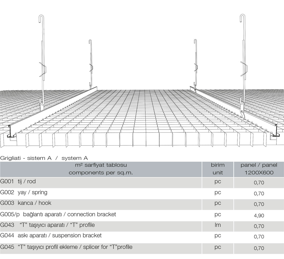 1200x600 mm ölçülerinde modüller, petek tavan taşıyıcı sistemi içinde gizlenirler. Gizli taşıyıcılı sistem modüllerin hızlı ve kolay şekilde demonte edilebilmelerini sağlar. Paneller T15 / T24 ("lay-in" ya da "lay-on") taşıyıcı sistemlere de uygundur.