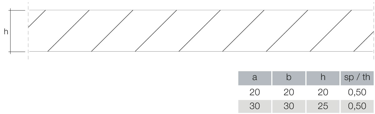 MONOBLADE располагает модульными панелями размером 1200x600 мм, состоящие из алюминиевых полос, которые соответствующим образом монтируются в квадратную ячейку с размером и высотой в зависимости от области применения.Размеры ячеек от 13x13 мм до 150x150 мм. Высота от 13 мм до 80 мм.
