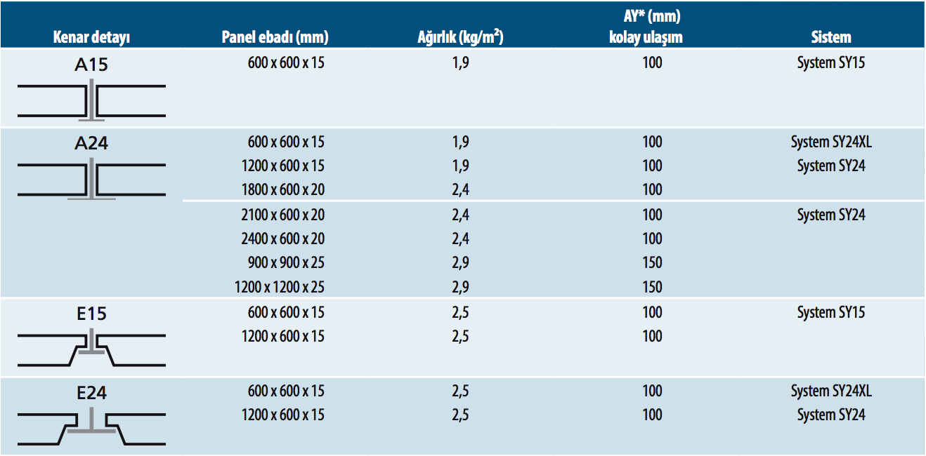 Rockfon A ve E Kenar Paneller demonte edilebilir.